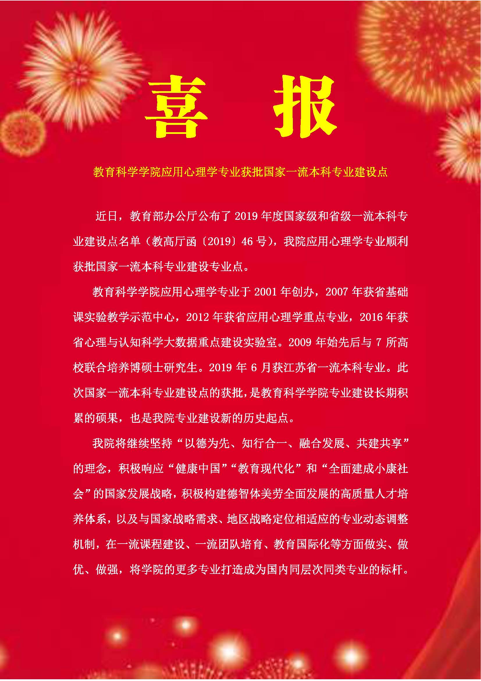 喜报--yd222云顶线路检测应用心理学专业获批国家一流本科专业建设点