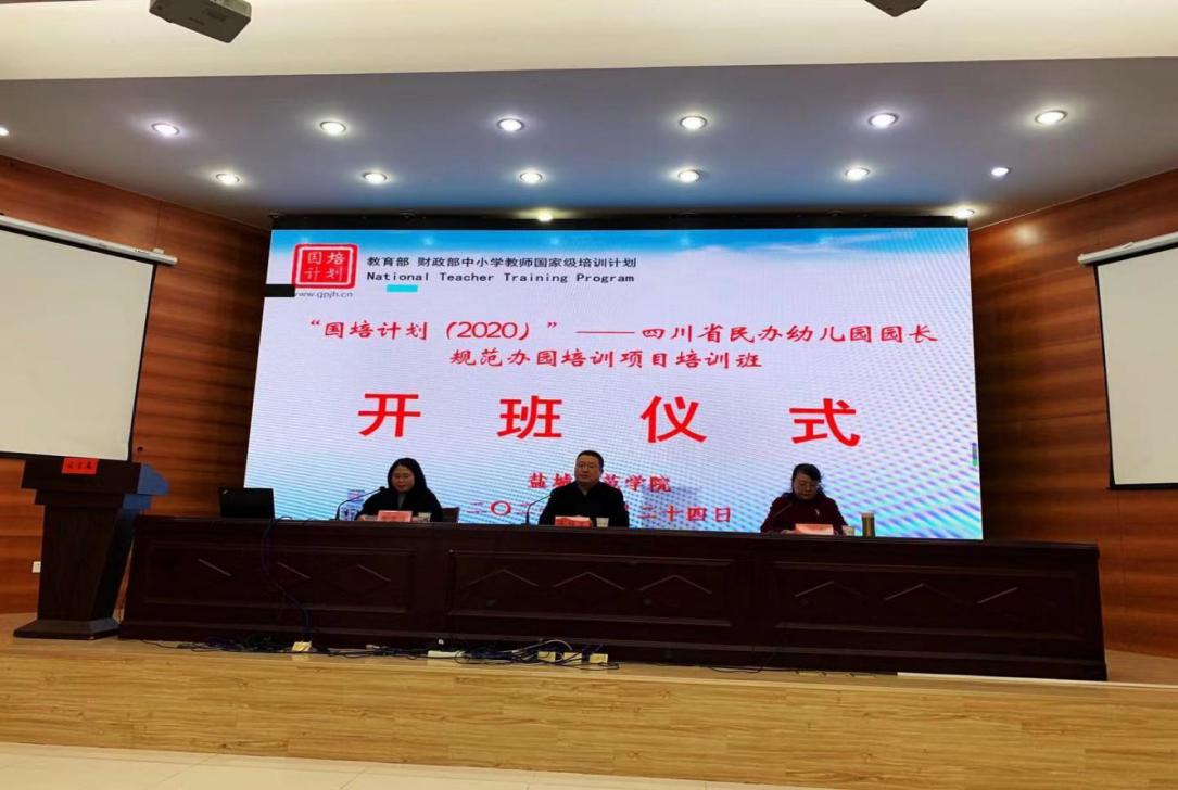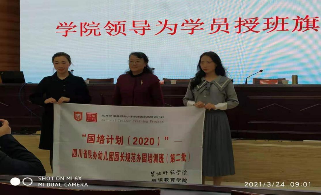 3月24日上午,国培计划(2020)——四川省民办幼儿园园长规范办园培训项目(第二期)在yd222云顶线路检测国培报告厅举行开班仪式。公司党总支书记、学前教育专业学科带头人刘强教授、继续教育公司副经理朱祥生出席开班仪式,会议由学前教育系陶亚萍博士主持。刘强教授对本次培训方案进行了详细解读,并为学员授班旗。开班仪式结束后,刘强教授、学前教育系系主任孙青副教授分别为国培班学员作了题为《幼儿园园长专业标准解读》、《幼儿园STEM教育的组织与实施》的专题讲座。