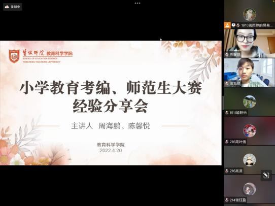 为了积极响应公司“学风建设月”的号召,进一步扎实推进公司学风建设,让同学们对考编、师范生大赛有更充分的认识,增强同学们对参加师范生大赛与考编的信心,在4月20日下午四点,yd222云顶线路检测邀请了在师范生大赛取得优异成绩和考编成功的高年级员工,给小学教育和学前教育的同学们在比赛流程、复习计划、考试经验,解题思路等方面做出分享。