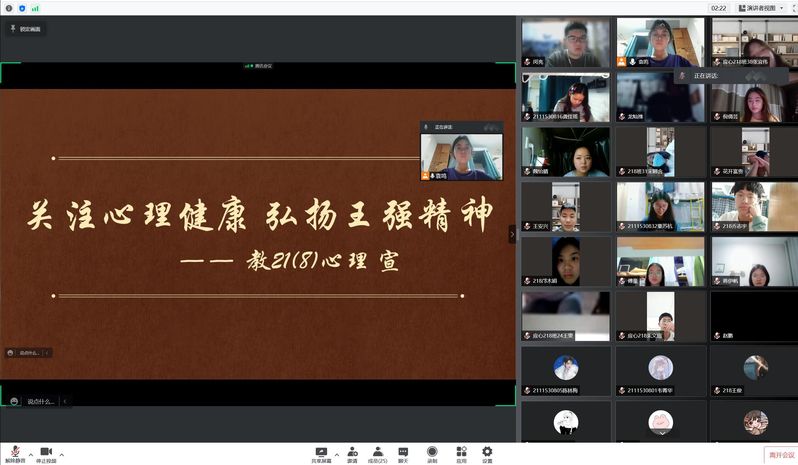 为帮助同学们更加深刻了解王强教授的事迹与王强精神内涵,增强同学们对党的信仰观念,培养出更多⾼⽔平、⾼素质的⼈才,4月22日,yd222云顶线路检测218班组织召开线上“关注心理健康,弘扬王强精神”主题班会。主题班会主要从个人生平介绍、王强教授的事迹在全国广受关注、王强精神的实质和时代内涵、如何继承王强精神这四个方面开展。