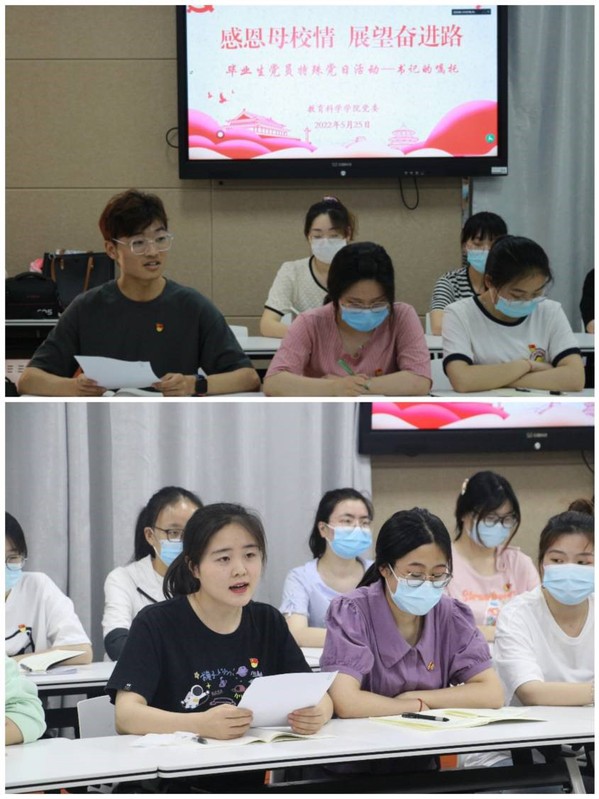 来之不同专业的六名毕业生党员代表依次发言,从自身专业、技能学习、考研上岸经验、党员学习感悟等方面表达出自身对母校以及老师们的感恩之心,并表示未来会坚定理想信念、脚踏实地,学以致用,服务社会。