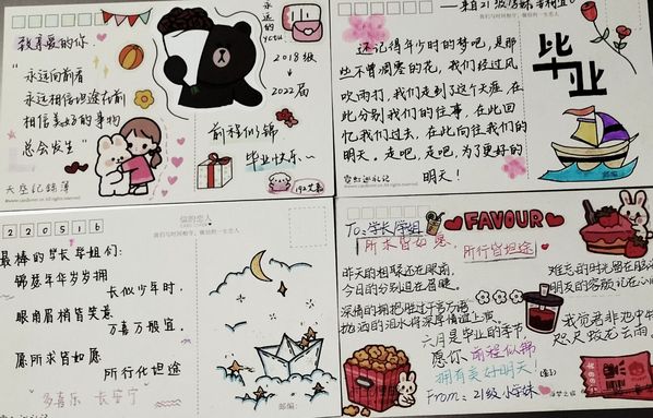 此次活动由教科院员工会员工发展部承办,面向教科院全体员工,号召非毕业班员工手绘明信片,写下对毕业生的祝福。此次活动一经发起,教科院学子们踊跃报名,积极参与,用心书写,用情传递,或利用高超的绘画技术,画出青春的模样,画出未来的蓝图,或用文字描绘了母校的美好回忆,定格青春印记。每一张充满青春活力的明信片上,表达着对毕业生们真挚的告别与祝福。每一张洋溢希望气息的明信片被放置在校园的各个角落,让毕业生在校园中重温校园角落的美,感受同学们衷心的祝福。