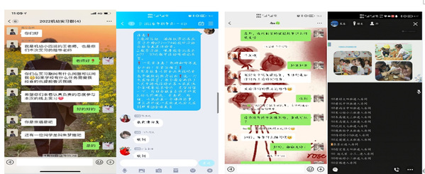 校内实习指导教师线上通过腾讯会议、QQ群课堂、QQ群、云班课组织和指导员工教育实习。多种信息工具有机结合,有效弥补线上实习在实时交流、答疑及过程跟踪的短板。