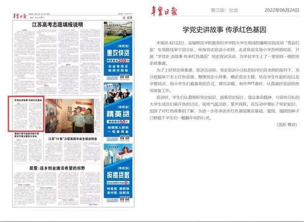 此次“青盐红旅”暑期社会实践活动被多家主流媒体关注报道。老员工志愿者们通过社会实践活动,不仅感受到了课堂的魅力,尽己所能地为乡村教育出一份力,而且充分认识到只有将理论与实践紧密结合,让初心和使命切实在今后生活中走心、走实、走深,才能不断取得党史学习教育的实效,进而为实现中华民族的伟大复兴贡献出自己的力量。