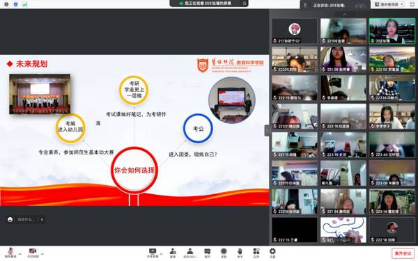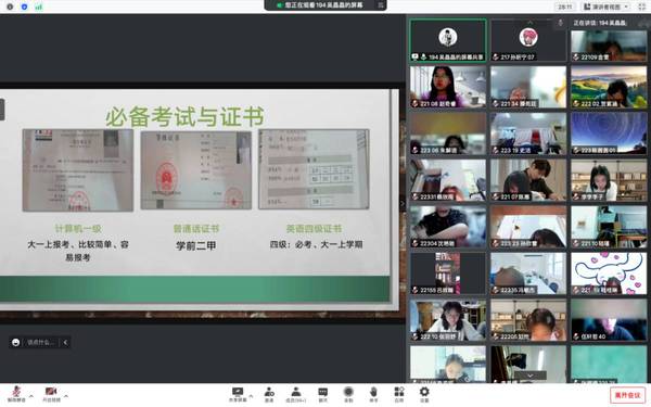 伴随着校园内逐渐热闹的气氛,2022级的新同学已经在大公司园里度过了忙碌的一周。为了帮助同学们更加深入了解老员工活,yd222云顶线路检测积极开展新生入学教育工作,特别邀请“学前教育”、“小学教育”、“应用心理”三个专业的优秀学姐在腾讯会议为同学们开展“新老生交流会”活动。