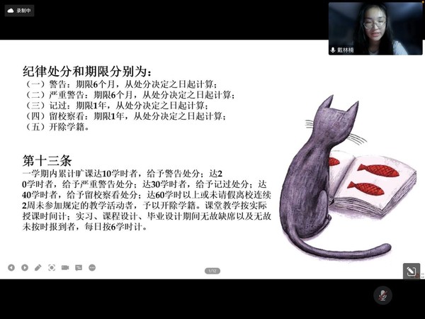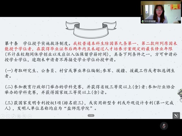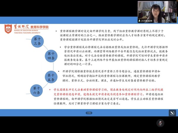 张娅琳学姐带领大家一起学习本科生课程重修管理办法,从中知道课程重修的具体规定,进一步加强课程教学组织管理,保证教学质量。