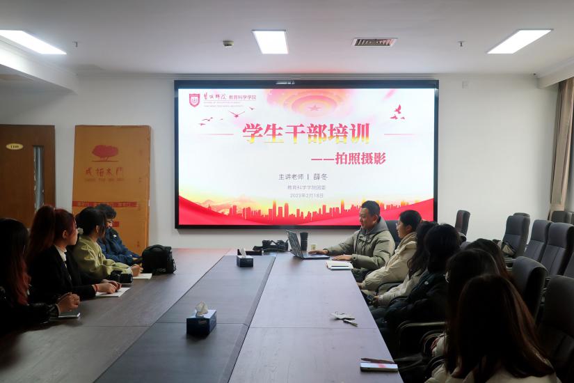 培训伊始,薛冬向员工干部介绍了摄影的定义以及摄影题材的大致分类、摄影术的产生、摄影史的发展等,并向员工干部列出了工作中可能会遇到的问题及其对应的解决方法。薛冬希望员工干部不仅仅将摄影当作一种传媒工具,而是将其作为一种艺术、情感、精神的表达媒介,向教科学子传递积极向上的正能量。