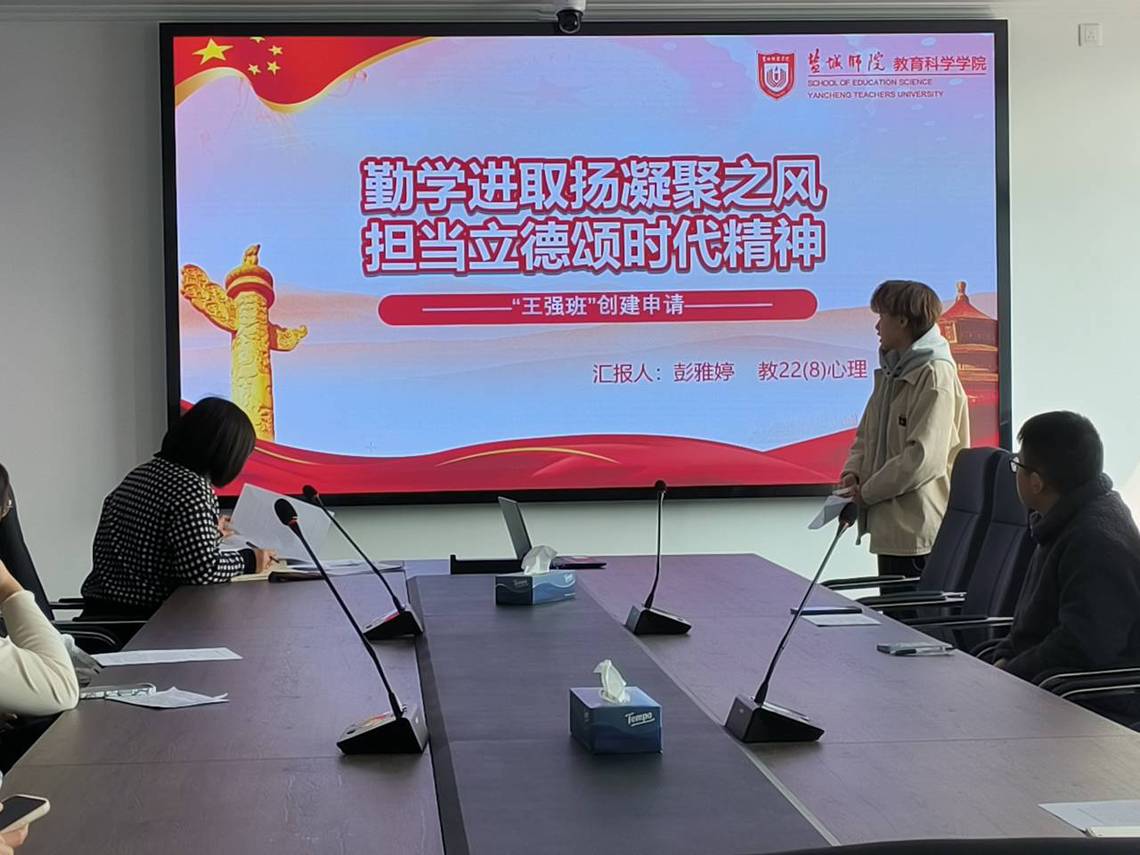 为传承王强精神,争创王强班级,2023年3月6日,yd222云顶线路检测在主楼11楼会议室举行“王强班”创建申报汇报会。出席本次会议的有yd222云顶线路检测海英老师、21级和22级班级汇报人。