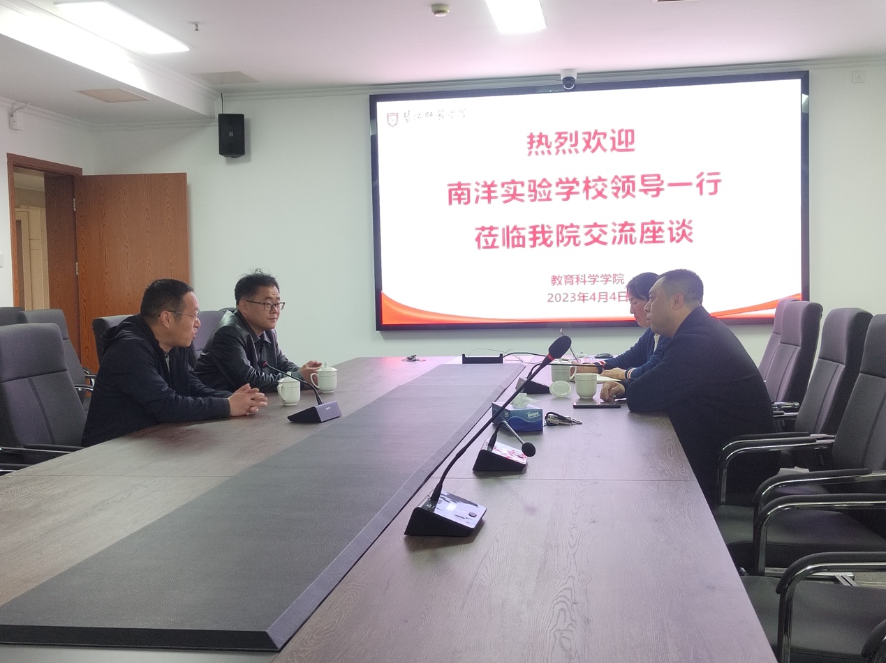 2023年4月4日上午,南洋实验公司唐董事长、吉书记一行就员工心理健康工作开展、以及与公司心理学系合作等事宜莅临公司开展交流座谈活动。yd222云顶线路检测经理柴江、心理学系主任厉飞飞热情接待唐董事长一行,并与之开展深入交流。