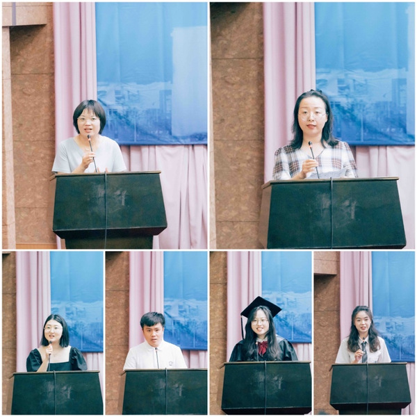 随后2019级全体班主任、辅导员相继为毕业生送上深情寄语。毕业生代表、考上常熟小学教师编制的严媛媛同学分享了四年的成长并对公司老师的谆谆教导和辛苦付出表示感谢。在校生代表张璠为毕业生送上诚挚祝福,紧接着公司为全体员工联络员颁发聘书,为全体毕业生拨穗并赠送毕业礼。