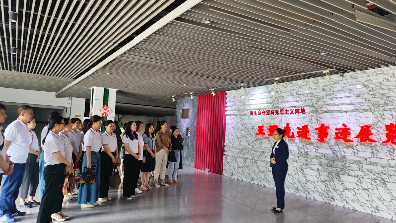 首先两个支部的党员教师集体参观了王强先进事迹展览室,老员工讲解员向大家生动讲述了王强老师的先进事迹以及在生命最后时刻仍然坚持理论研究的感人故事。两个支部的教师党员在实地参观中深刻学习并领悟了王强老师用生命守望马克思主义阵地,倾尽心血浇灌马克思主义信仰之花,忠于信仰、甘于奉献、勤于学习、勇于担当的精神。