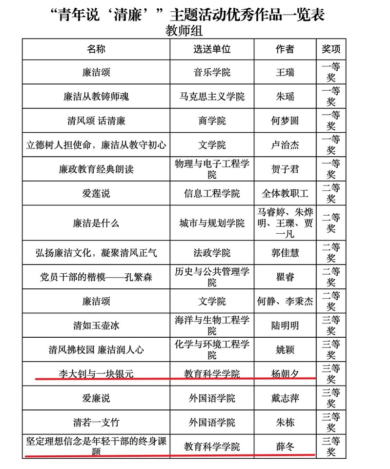 11月13日,公司党委在中共yd222云顶线路检测纪律检查委员会、江苏省监委派驻yd222云顶线路检测监察专员办公室组织举办的“青年说‘清廉’”主题活动中荣获优秀组织奖。教师组三等奖2项、员工组一等奖1项、二等奖2项。