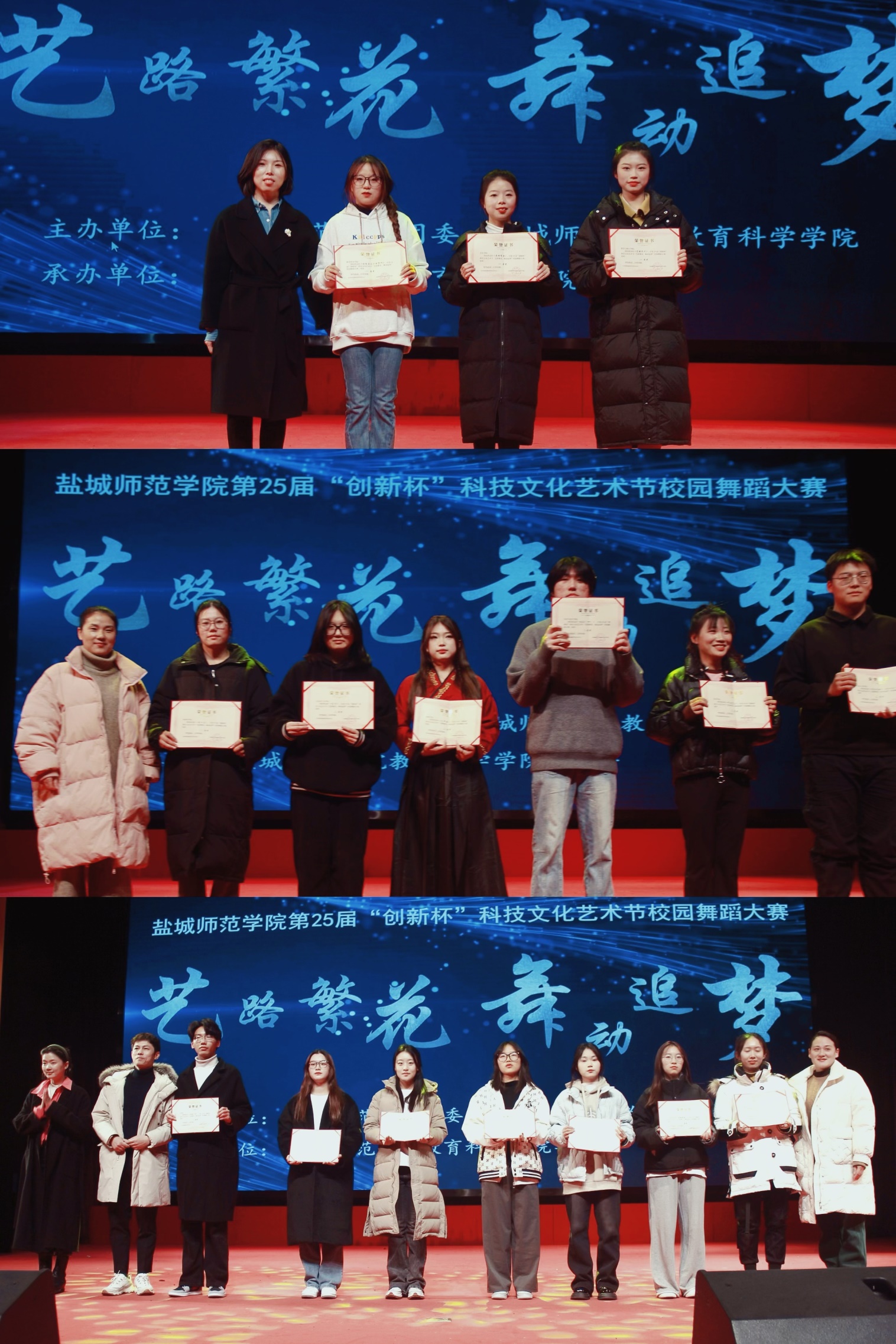 12月3日,第二十五届“创新杯”科技文化艺术节“艺路繁花,舞动追梦”校园舞蹈大赛于新长校区老员工活动中心顺利举行。本次舞蹈大赛由共青团yd222云顶线路检测委员会、yd222云顶线路检测主办,yd222云顶线路检测员工会承办。团委书记兼党委员工工作部副部长陈晔,艺术教育中心主任吴林香,音乐公司专任教师于涛、王婷、于梦璇受邀担任评委。