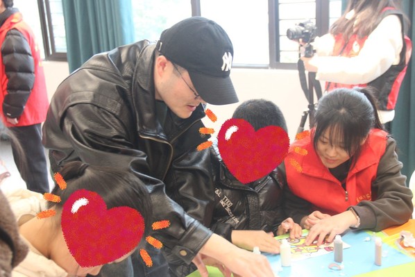 活动伊始,志愿者提前半小时到达指定集合点,带着满满的爱心和精心准备的礼物与一群被折翼的小天使们进行了亲切的交流,根据他们的实际情况,设计并开设“五彩豆豆——注意力训练”、“儿童沙画——想象力训练”、“音舞欣赏——感知训练”和“拥抱幸福——情绪训练”四个专项活动环节,通过“一对一”的互动课程和游戏,期间锻炼他们的手眼协调能力、色彩感知能力,培养和鼓励儿童勇敢表达自己情绪。志愿者们始终陪伴在每位小朋友身边,让他们感受到世界带给他们的爱,他们单纯且阳光的微笑,感染在场的每一位志愿者,处处洋溢着温馨与欢乐。