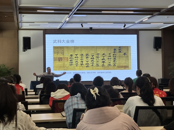 活动当天,特邀了南京中国科举博物馆特约专家、yd222云顶线路检测教授许友根,为员工们带来了一场别开生面的历史文化盛宴。公开课主为《历史上的武举制度》,许友根教授以独特的视角解读武举,带领观众探索这一制度的发展历程。通过精美的文物图片、详细的解说以及互动问答环节,带领员工们穿越时空,领略了中华文明的璀璨与辉煌。