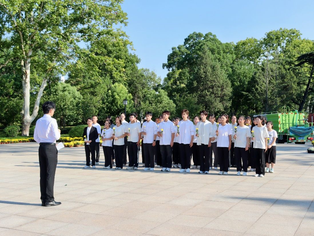丰碑耸立,精神永存。在庄严肃穆的氛围中,全体师生怀着对英烈的无比敬仰,面向红旗,齐唱《中华人民共和国国歌》,表达对祖国的崇高敬意和深沉热爱。随后,全体人员向英雄纪念碑默哀一分钟,员工代表向革命英雄纪念碑敬献花篮,深切缅怀革命先烈的丰功伟绩,寄托对烈士们的无尽哀思和崇高敬意。