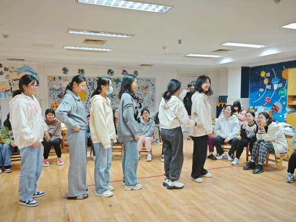本次活动由四个部分组成,分别是“听歌识曲”“连词造句”“逛三园”和“不能说的秘密”。在主持人的带领下,大家在座位上有序坐下。接下来播放的风格各异的歌曲为大家带来了阵阵欢声笑语,一首欢快的《STAY》让同学们纷纷抢答,一首《NOTHING TO LOSE》则引起了回忆杀。热爱音乐的同学们竞相抢答,很快气氛便被带动了起来。大家渐渐放下一天课业带来的疲惫,全身心地投入游戏之中。下面就进入到了有趣生动的“连词造句”活动。从“我在雪天穿着破洞裤吃辣条”到“为了度过这个雪天,我只能一边穿着破洞裤一边吃辣条”,大家在展开思绪的同时也不断放飞想象力,引得主持人和工作人员都开怀大笑。第三个部分“逛三园”开始后,同学们热情不减,仔细聆听主持人说的问题,说出相关主题词语。一位同学似乎忘记了他人说过的动物,她面带着微笑,接受了主持人宣布的小小惩罚。爽朗的笑声在团辅活动室此起彼伏,今天的活动也进入了最后部分——你想我猜。主持人宣布所想词语后,大家时而面面相觑,时而面露微笑,绞尽脑汁想着各类人名和神话故事的主角名。在收获了众多欢乐后,大家聚在一起拍了大合照,今天的活动迎来了圆满的结尾。无论是考验创造力的文字游戏,还是激发活力的竞技游戏,今天的活动都收获了大家的一致好评。