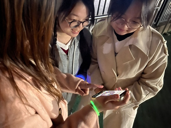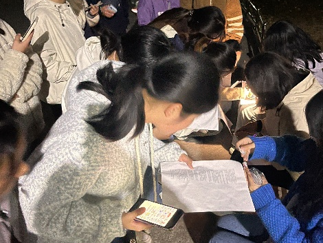 随着活动开始的指令发出,同学们纷纷踏上了充满趣味的校园漫步之旅。他们手持荧光棒,漫步在熟悉又有些神秘的校园小径上,伴随着他们的漫步,校园也渐渐被这些荧光点亮。活动设置了多个打卡点,各个打卡点藏在校园的各个角落中,就像是藏在夜色中的宝藏。