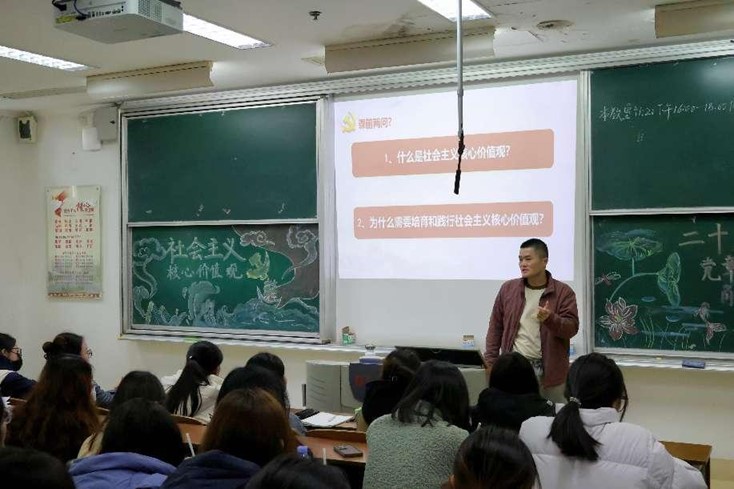 陈志鹏从国家、社会、个人三个层面对社会主义核心价值观进行了详细解读,结合社会热点事件以及自身学习工作经历,为大家讲授了个人如何在实践中培育和践行社会主义核心价值观。他强调,积极分子作为党的新生力量,应当率先垂范,将社会主义核心价值观内化为自己的行为准则,用实际行动践行社会主义核心价值观。