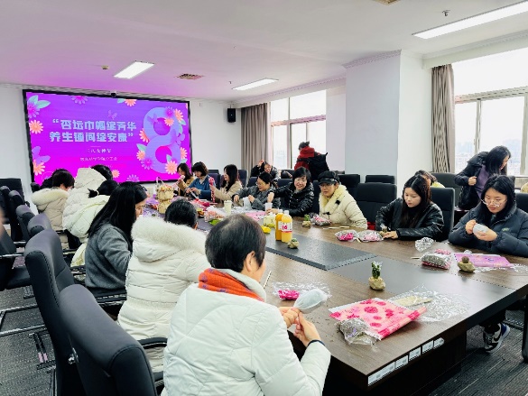“杏坛巾帼绽芳华,养生锤间绽安康”