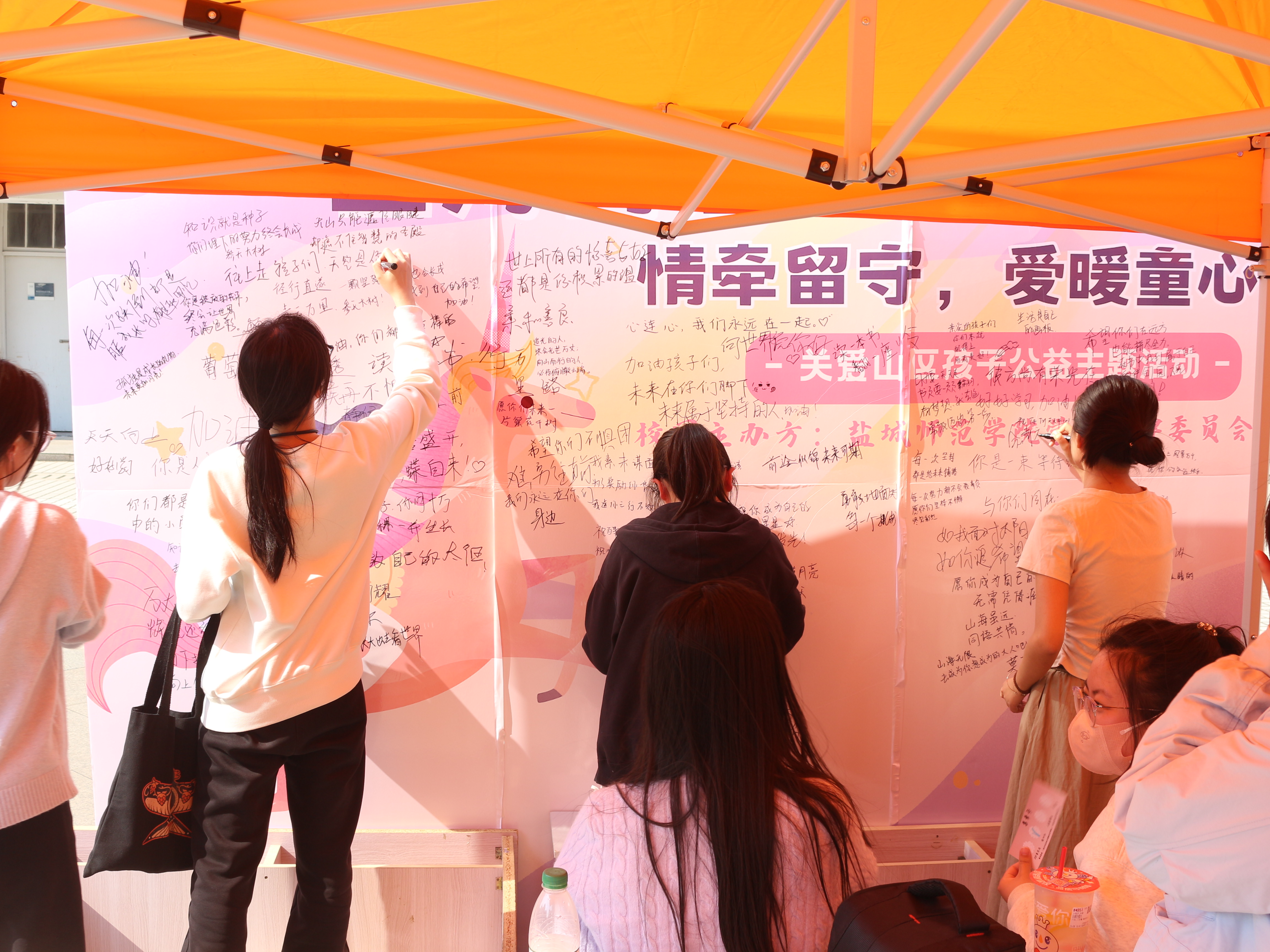 活动现场设置了三项趣味环节,将公益与学风建设深度融合。“普通话绕口令大赛”与“321看这边”,既考验语言表达能力,又在游戏中提升专注力,充分体现寓教于乐、融学于趣、化教于心的重要作用;在“山海同语”互动墙上,师生们写下的百余条真挚祝福:“愿你以书为舟,乘风破浪”“知识是最长情的陪伴”……充满温度的话语与书籍共同打包,为山区孩子送上双重关怀。