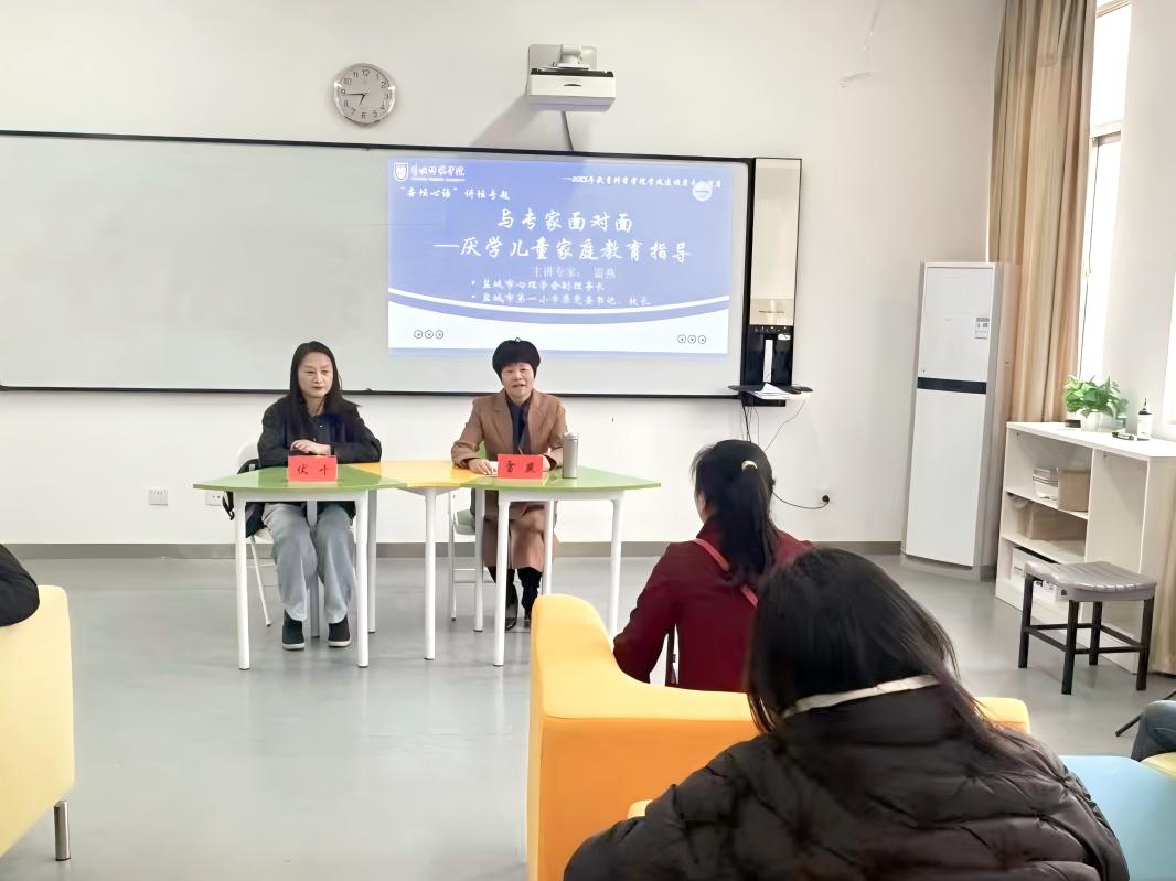 对话专家视角,破解家庭教育难题。讲座《与专家面对面——厌学儿童家庭教育指导》由盐城市心理学会副理事长、盐城市第一小学原党委书记、董事长雷燕主讲。雷董事长结合多年教育管理经验,深入分析了厌学儿童的成因及心理特点,指出家庭教育在儿童学习动机培养中的关键作用。她强调,家长应关注孩子的情绪需求,建立良好的亲子沟通,避免过度施压。讲座中,雷董事长通过生动的案例分享,为师生提供了实用的教育策略,如正向激励、兴趣引导等,现场互动热烈,师生纷纷表示受益匪浅。