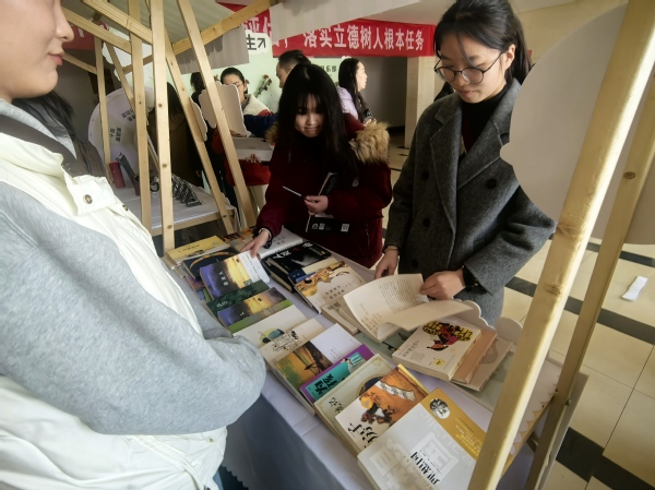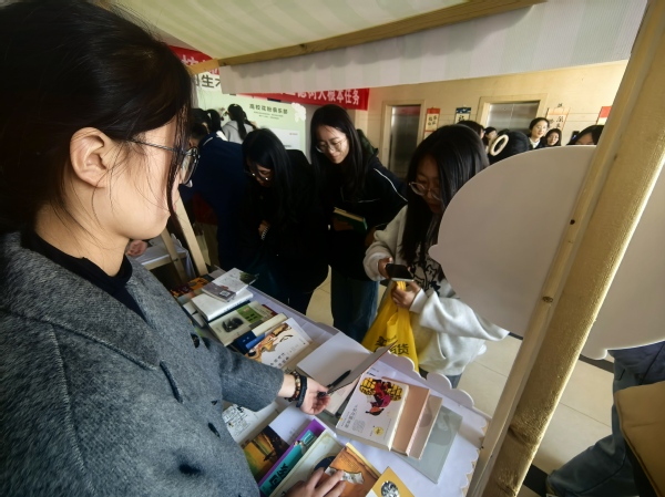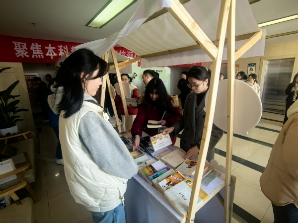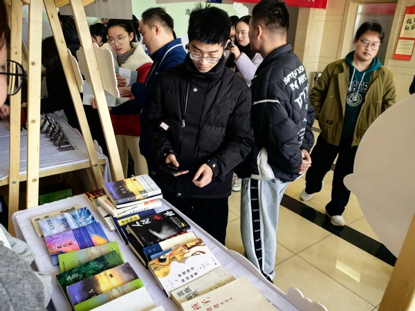 在读书交流会的热烈氛围持续烘托下,教科院主楼11 楼的图书站摇身一变,成为知识与情感交融的温馨驿站。同学们怀揣着闲置书籍纷至沓来,开启一场独具匠心的书香邂逅。活动现场,从东野圭吾《嫌疑人 x 的献身》的烧脑推理,到《洛克菲勒写给儿子的 38 封信》的人生智慧,再到《你当像鸟飞往你的山》的励志逆袭,每一本书都是一座思想宝藏。同学们穿梭书海,精心甄选心仪书籍,不时停下交流心得,分享与书的奇妙缘分。