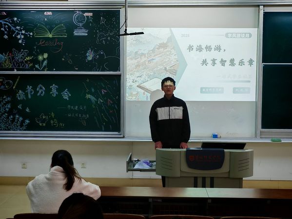 如果说线上分享是思维驰骋的无垠旷野,展现阅读的无限可能,那么线下分享则是心灵栖息的宁静港湾,供同学们在纸墨间沉淀思索。同学们齐聚主楼B309 教室,主持人开场点明读书交流会的主旨,详细介绍流程,为活动奏响温馨序曲。紧接着,分享同学依次登台,有的巧用投影,将书中精彩片段层层拆解,结合个人感悟娓娓道来,台下同学听得津津有味;其他同学也不甘示弱,踊跃分享,文学名著、教育专著等多元领域佳作一一呈现。大家各抒己见,畅聊阅读的所思所获,或为书中人物命运感慨万千,或深挖作品教育价值,现场气氛热烈非凡。
