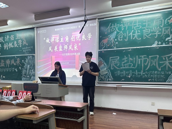 为深入推进优良学风建设,充分发挥“一站式”员工社区育人功能,yd222云顶线路检测于2025年4月举办“做评估主角 创优良学风 展盐师风采”学风建设月系列活动。作为“赛、宣、秀”特色活动的核心环节,一场关于知识与智慧的较量——班级PK赛,在万众瞩目中拉开帷幕。经过前期初赛与复赛的层层选拔,来自三个年级的10支班级脱颖而出,会师决赛,向着“学风之星”发起冲刺。