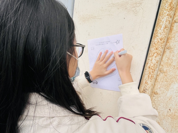 活动伊始,参与员工首先在教室内集合,领取活动用纸,并在纸上描绘下自己的手掌轮廓。随后,员工们根据指引前往校园内多个精心布置的打卡点,与工作人员互动交流。每完成一个站点的任务,参与者不仅要与工作人员进行象征友好与肯定的击掌,还需邀请工作人员描绘其手掌轮廓,并一同拍摄合影,记录这份“掌心之间”的暖心瞬间。