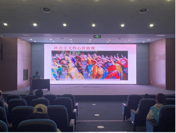 科技赋能文博,架设古今对话桥梁。5月17日,团队在海盐博物馆开展“科技下的博物馆未来”主题宣讲。志愿者通过AR虚拟展厅、全息投影等案例,生动展示数字技术如何活化文物展览,并结合智慧导览系统讲解科技对博物馆运营的革新作用。5月24日再赴博物馆,以海盐历史为脉络,通过微视频与互动问答,将“公正”核心价值观与地方文化深度融合,实现抽象理念的具象传播。