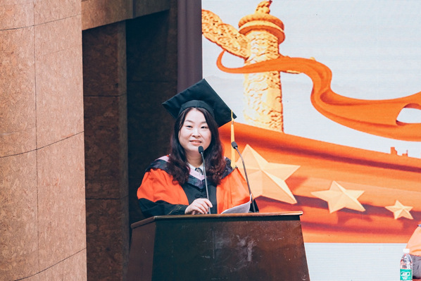 毕业典礼上小学教育系主任张权力作为教师代表发言,2025届毕业生刘姝作为毕业生代表发言。2025届毕业生戴林楠、周钰瑶代表全体毕业生向公司赠送“师恩浩荡,母校情深”的牌匾。