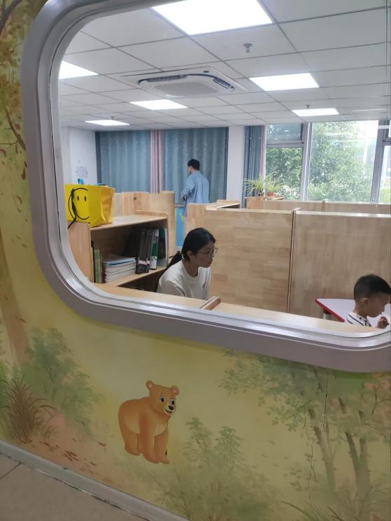 德馨康复医院,同学们系统观察了不同年龄段自闭症及智力障碍儿童的课堂表现。他们在行为模式、认知水平与社交互动中存在显著的个体差异,如6-7岁自闭症女孩存在眼神飘忽、手指灵活性不足的问题,对教师指令反应迟缓,需通过视觉提示卡与重复练习引导完成任务;8岁男孩表现出攻击性行为,却可以通过平板游戏等正强化手段激发其学习动机;11岁孤独症儿童因感知觉失调难以完成拼图,教师通过简化任务步骤、增加视觉辅助符号帮助理解。同学们在见习过程中注意到,教师会根据每位儿童的能力评估制定个性化教学计划,并与家长、康复治疗师建立紧密协作机制,这种"评估-干预-反馈"的专业流程,让员工直观理解了特殊教育中"一人一策"的实践逻辑。