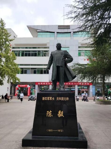 位于通榆校区北园食堂前的小广场。雕像展现了陈毅元帅迎风而立、战袍飘飘的形象,彰显其坚韧不拔、勇担大任的大无畏精神及新四军的“铁军精神”。