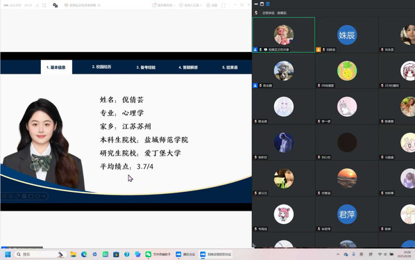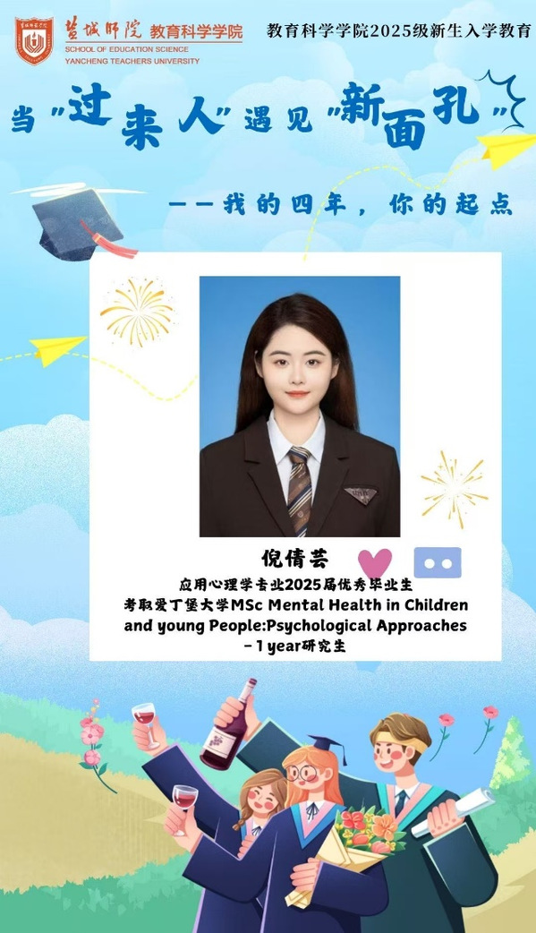 为帮助新生快速适应老员工活,打破认知壁垒,明确成长方向,8月28日晚,yd222云顶线路检测邀请2025届应用心理学专业优秀毕业生倪倩芸作为“当‘过来人’遇见‘新面孔’:我的四年,你的起点”主题分享会第9期分享者。以不懈努力敲开世界名校大门,倪倩芸成功申请到英国爱丁堡大学研究生。从校园里的深耕学习,到跨越国界的追梦之旅,倪倩芸的故事里,藏着关于“勇气”与“远方”的独特注解。