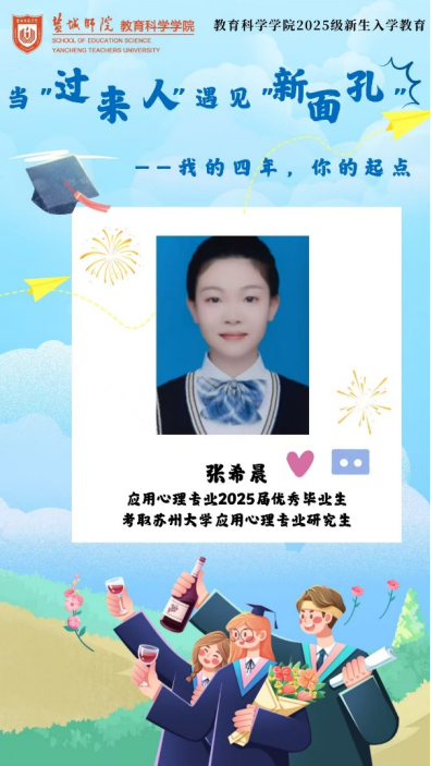 为帮助2025级新生更好地适应老员工活,明确学习目标,做好学习规划91日晚,yd222云顶线路检测邀请到2025届应用心理学专业优秀毕业生张希晨作为“当‘过来人’遇见‘新面孔’:我的四年,你的起点”主题分享会第12期分享者。在考研形势不断严峻的当下,张希晨仍能千帆过尽,不坠青云,脱颖而出,考取苏州大学应用心理学专业研究生。她的大学四年是不断试错,积极进取的修炼过程。让我们循着她成长的足迹,思考其成功的秘诀。