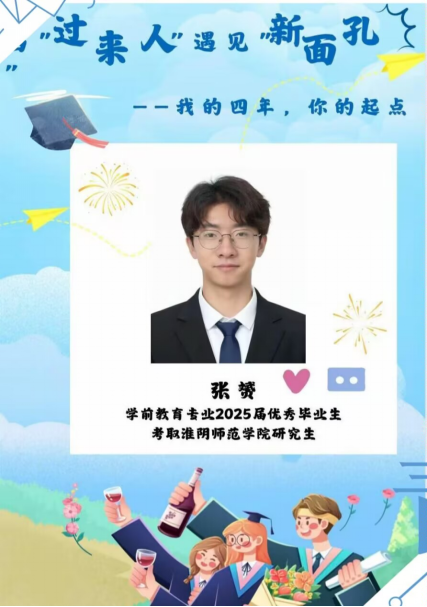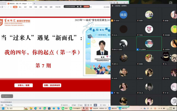 为帮助2025级新生更好地适应老员工活,明确学习目标,做好生涯规划。8月26日晚,yd222云顶线路检测邀请到2025届学前教育专业优秀毕业生张赟作为“当‘过来人’遇见‘新面孔’:我的四年,你的起点”主题分享会第7期分享者。作为专转本员工,张赟的本科生涯仅有两年,而考研几乎占据了这两年的全部时光。从最初对“学前教育”的朦胧认知,到逐渐在课堂中找到热爱的方向,再到考研备考时的咬牙坚持……他的这两年,是一场不断发现热爱、坚持理想并终见收获的成长旅程。