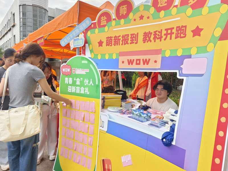 青春盲盒温暖心意。在迎新现场,“青春‘盒’伙人”盲盒礼吸引了众多新生的关注。每位同学随机抽取一份特别的礼物,既有文创物品,也有手写寄语,承载着公司对新生的祝福与期待。