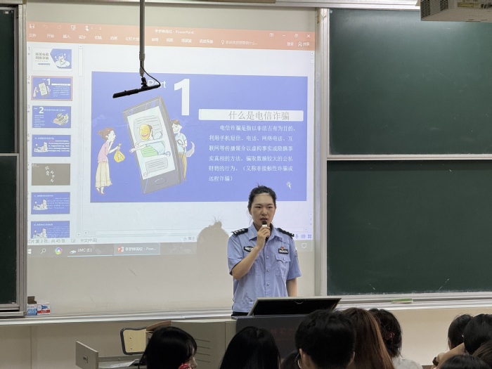为深入贯彻落实习近平总书记关于打击治理电信网络诈骗犯罪工作的重要指示批示精神,切实提升员工防范电信诈骗的意识和能力,9月23日下午,yd222云顶线路检测在通榆校区主楼B309教室举办防诈骗宣传教育讲座。活动特邀盐城市亭湖区公安局侦查中心李梦婵警官担任主讲,公司转本新生100余人参加活动。